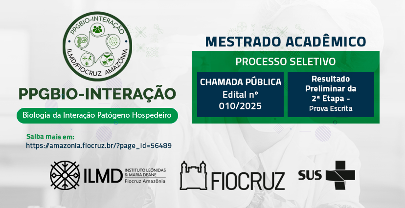 O Instituto Leônidas & Maria Deane (ILMD / Fiocruz Amazônia), divulgou o cronograma da 2ª Etapa (Prova Oral) da Chamada Pública nº 011/2025, referente ao Processo Seletivo, para ingresso no curso de doutorado do Programa de Pós-Graduação Strictu Sensu em Biologia da Interação Patógeno-Hospedeiro PPGBIO-Interação Doutorado (Turma 2026).