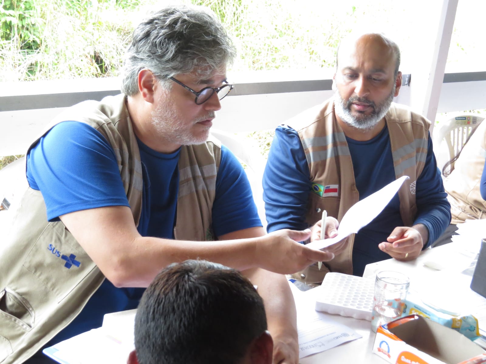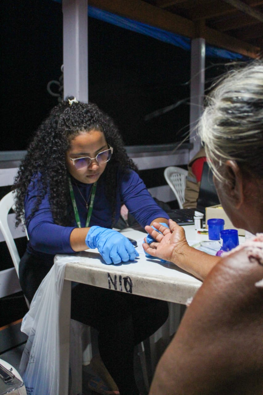 A equipe vem trabalhando na coleta de amostras biológicas humanas e de animais, para o rastreamento de possíveis patógenos que possam estar circulando nas áreas peridomiciliares, e oferecendo exames, que deveriam ser rotina na assistência, mas se tornam de difícil acesso para indígenas isolados. Estão sendo realizados hemograma, hemoglobina glicada e PCR para diabéticos e hipertensos, HPV para mulheres (protocolo do autocoleta), além de ações de controle social e empoderamento das comunidades, com palestras sobre direitos humanos, acesso à saúde indígena, inseguranças alimentar e hídrica, impacto dos alimentos ultraprocessados na saúde, saúde bucal, qualidade da água para uso e consumo e educação em saúde.