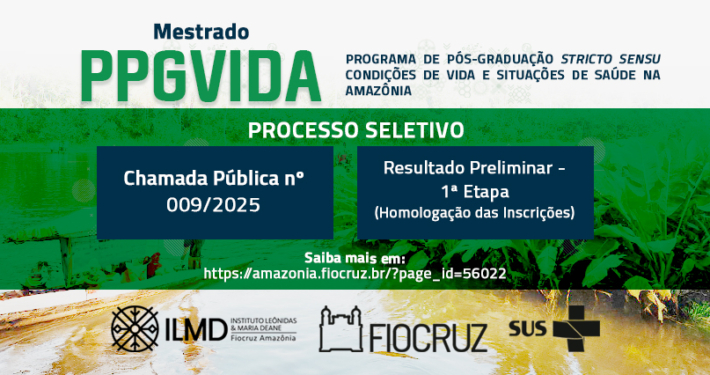 Fiocruz Amazônia divulga resultado preliminar da primeira etapa do processo Seletivo do Mestrado PPGVIDA, turma 2026