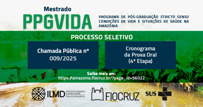 Fiocruz Amazônia anuncia cronograma da prova oral do processo seletivo da turma 2026 do PPGVIDA
